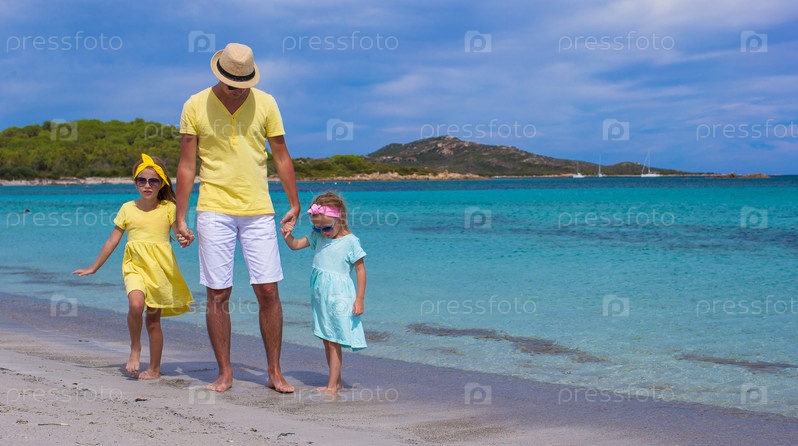 Отец с дочерьми на пляже