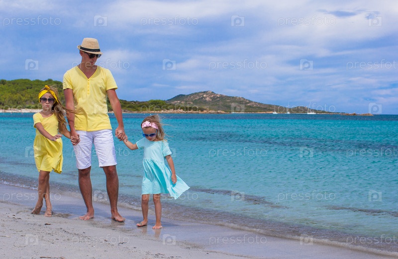 Отец с дочерьми на пляже