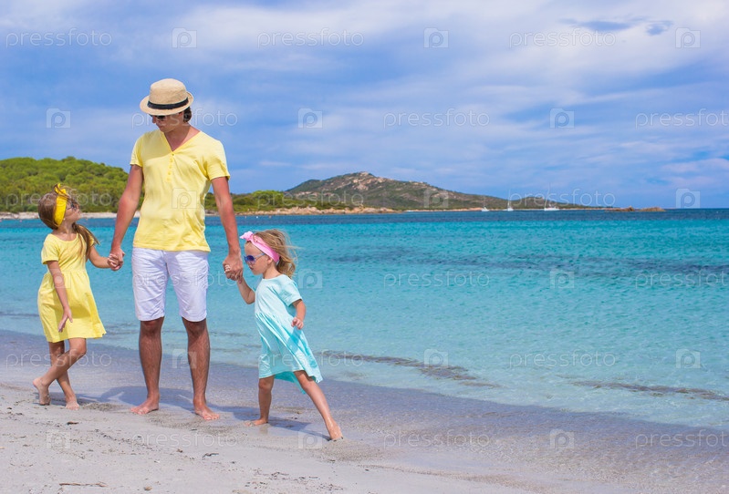 Отец с дочерьми на пляже