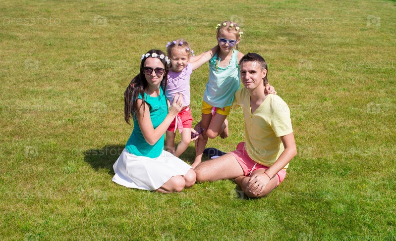Счастливая семья на газоне