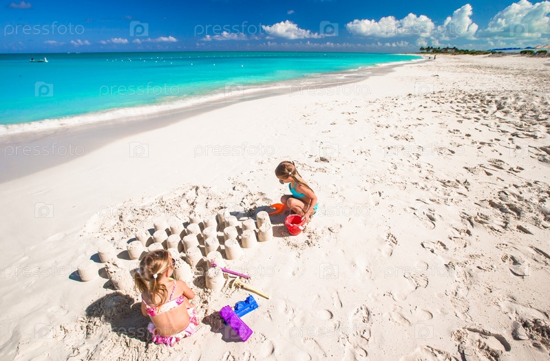 Маленькие девочки играют на пляже