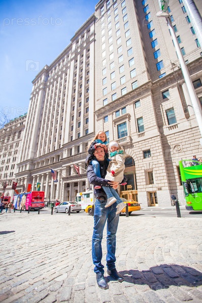 Отец с дочерьми в Нью-Йорке