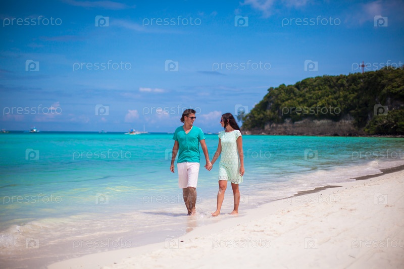 Молодая пара прогуливается по пляжу