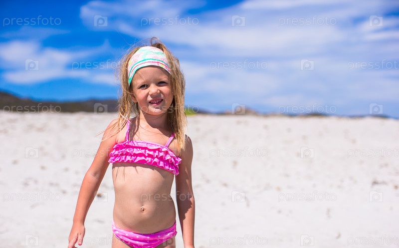 Очаровательны маленькая девочка на тропическом пляже