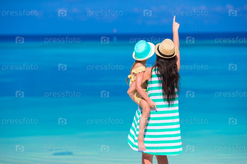 Мать и маленькая девочка во время тропического отпуска