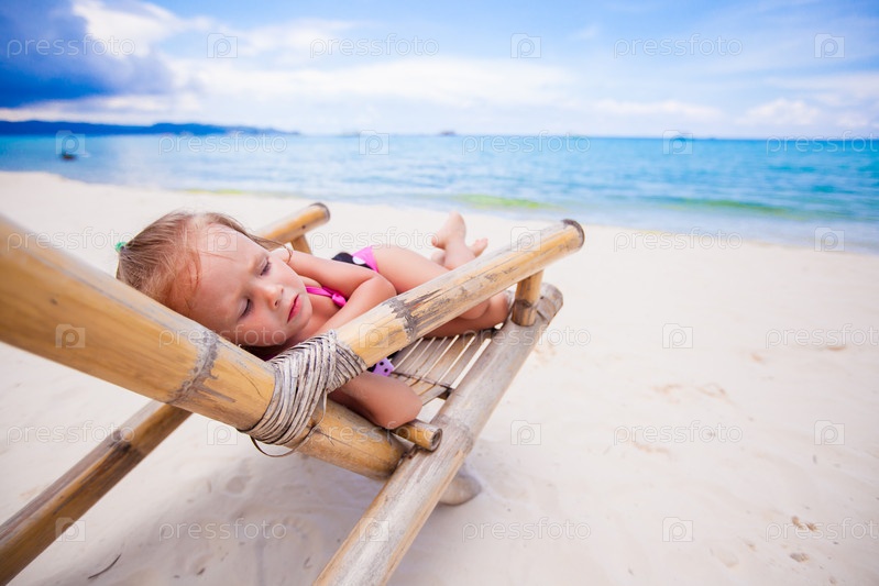 Очаровательная маленькая девочка на шезлонге