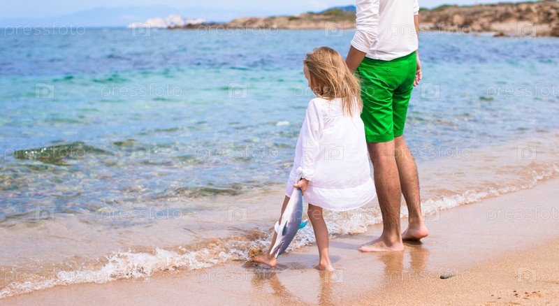 Счастливый отец и маленькая девочка во время пляжного отдыха