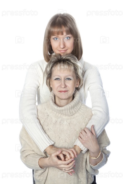 Счастливые мать и дочь обниматься