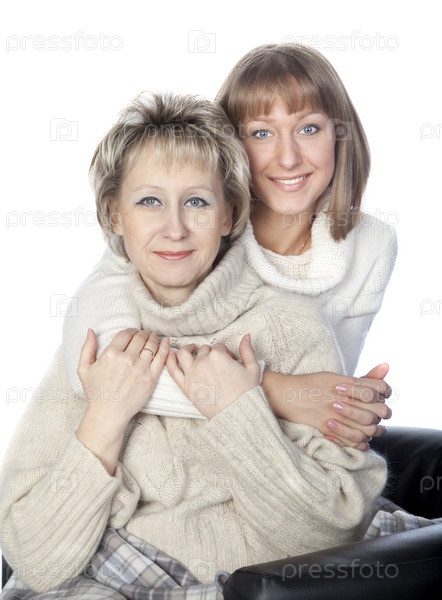 Счастливые мать и дочь обниматься