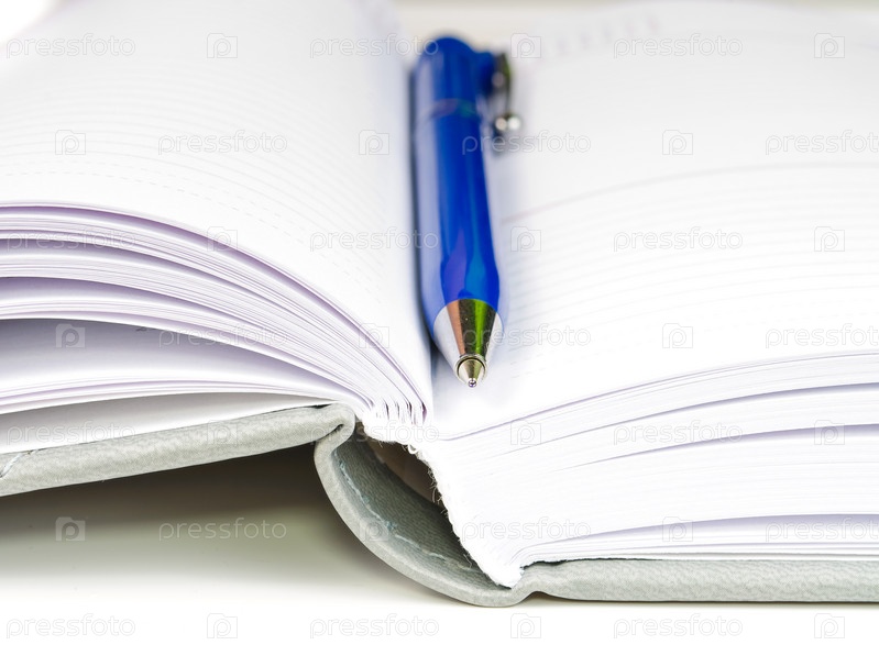 Органайзер и шариковая ручка на белом фоне