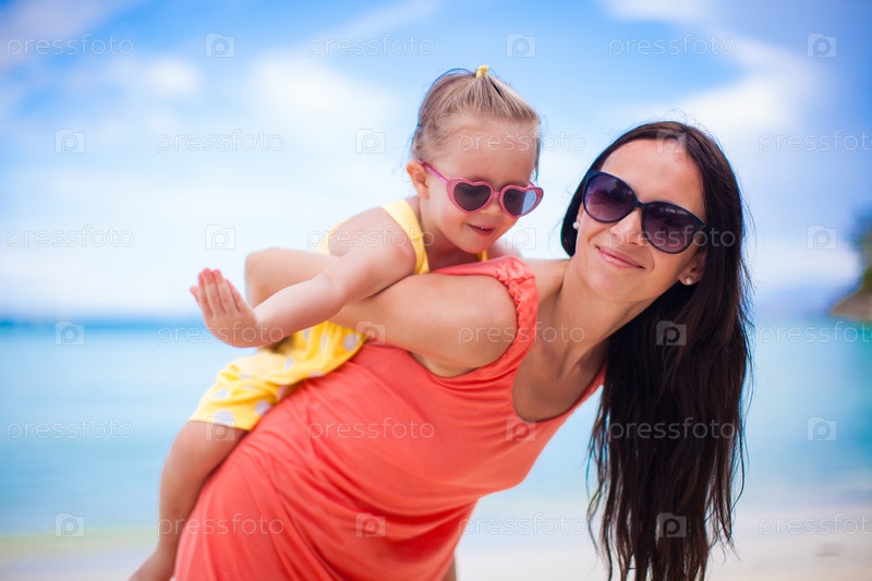 Маленькая девочка и счастливая мама во время каникул