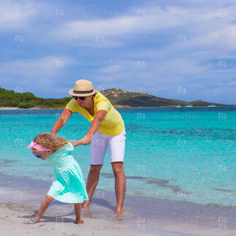 Счастливый отец и маленькая дочь на пляже