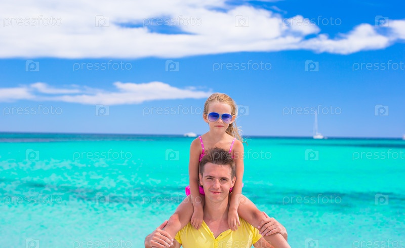 Счастливый отец и маленькая дочь на пляже