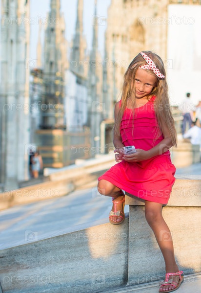 Очаровательная маленькая девочка на крыше Дуомо, Милан, Италия