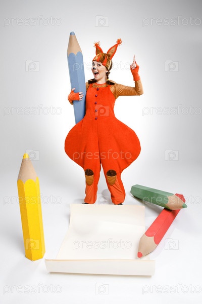 Белка с большими карандашами