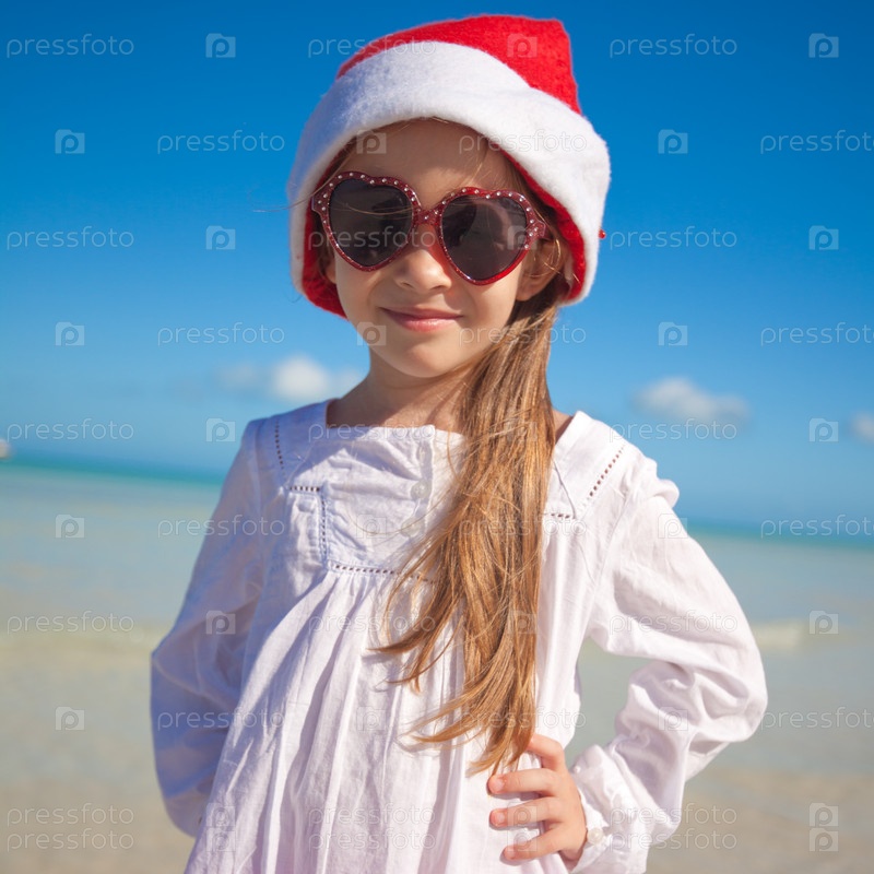 Маленькая девочка в красной шляпе Санты