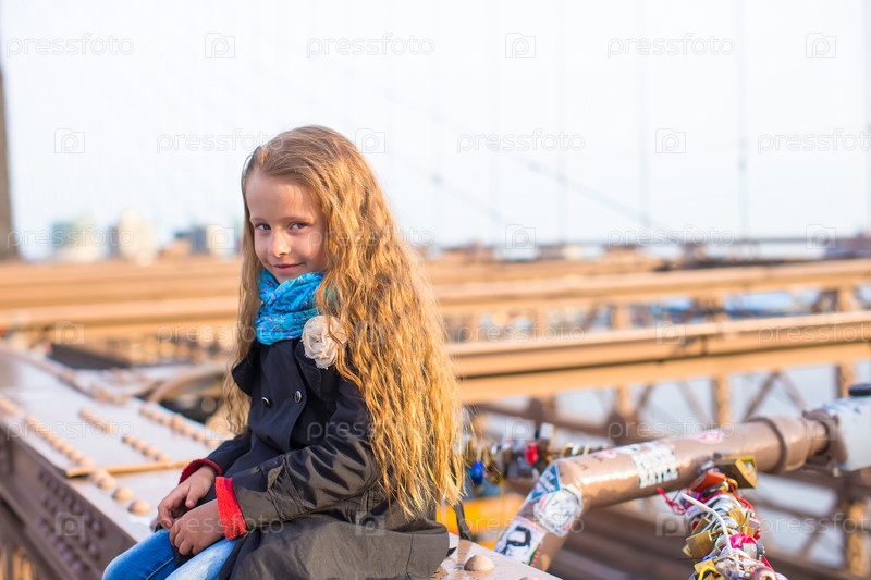 Маленькая девочка сидит на Бруклинском мосту