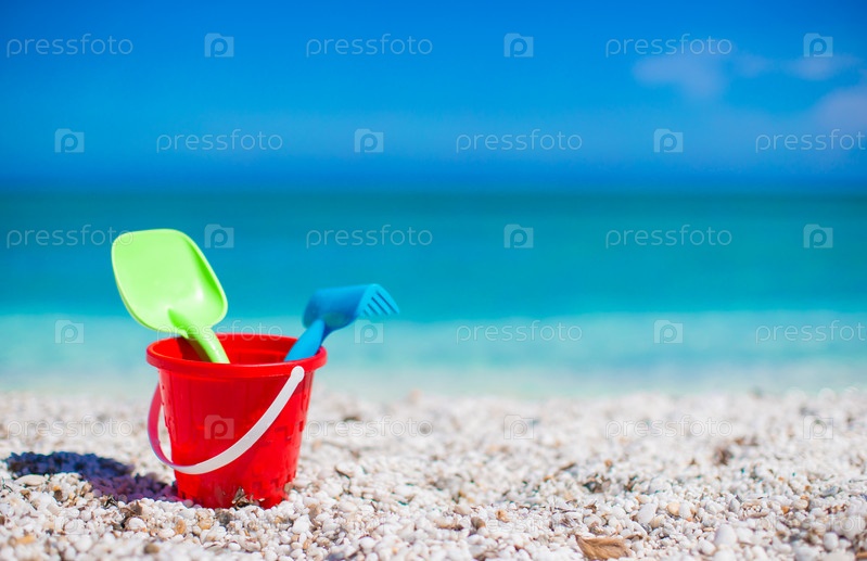 Детские игрушки на белом песчаном пляже