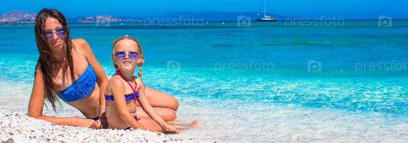 Молодая мать и очаровательны маленькая дочь во время летних каникул