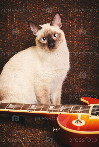 Тайская кошка около гитары