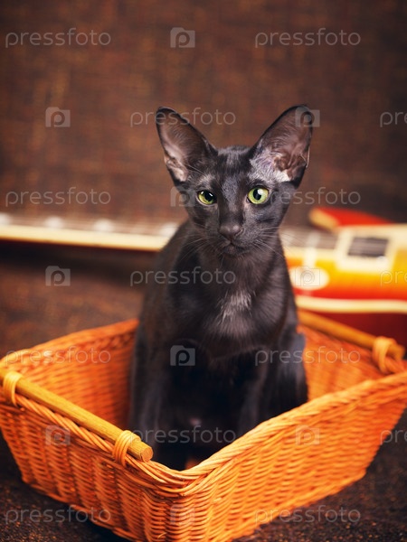Черная кошка в корзине