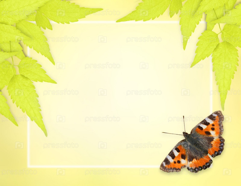 Фон с бабочкой и зелеными листьями