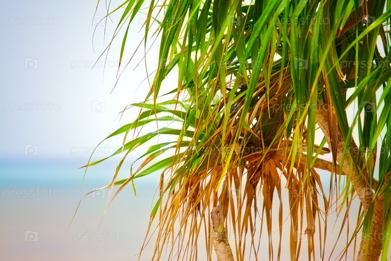 Зеленые пальмы на пляже на фоне голубого неба