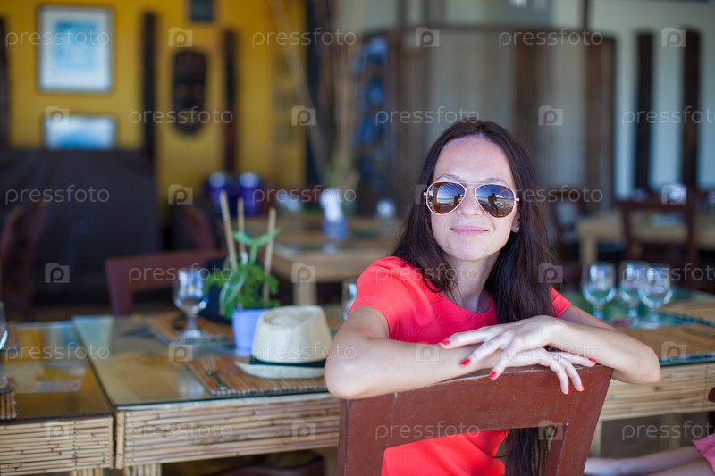 Молодая девушка в кафе