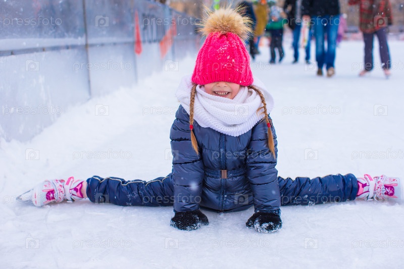 Девочка сидит на шпагате на льду