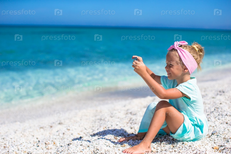 Маленькая девочка фотографирует море