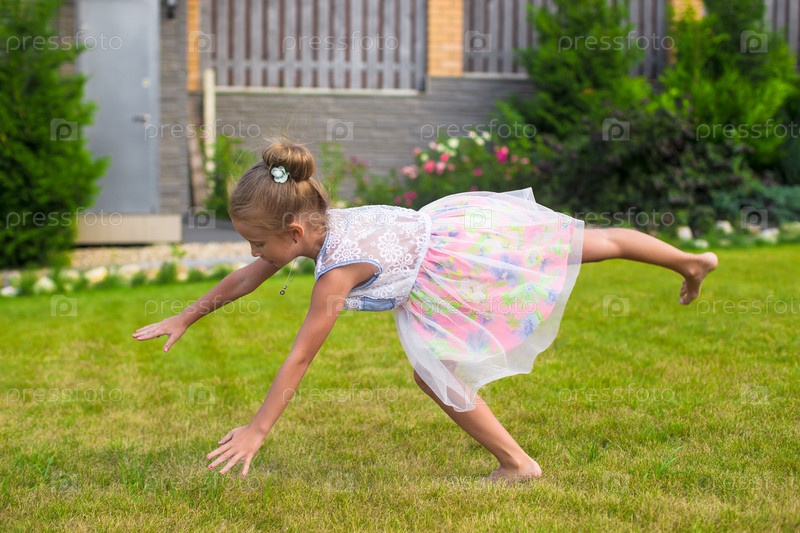 Девочка играет на заднем дворе