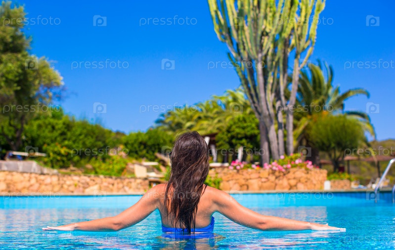 Красивая молодая женщина расслабляется в бассейне