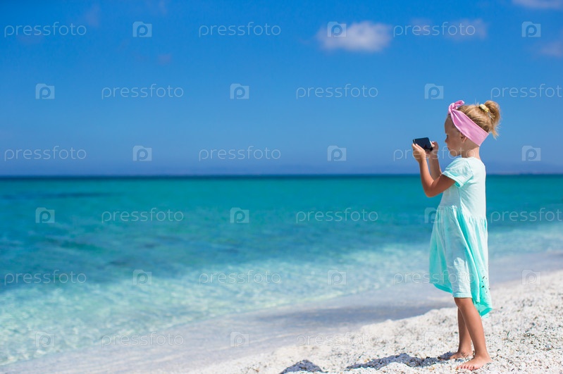 Девочка со смартфоном на пляже