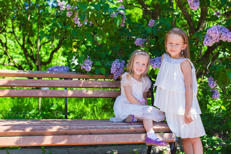 Очаровательные девочки в цветущем парке