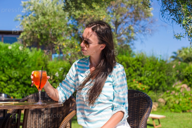 Молодая красивая женщина с коктейлем
