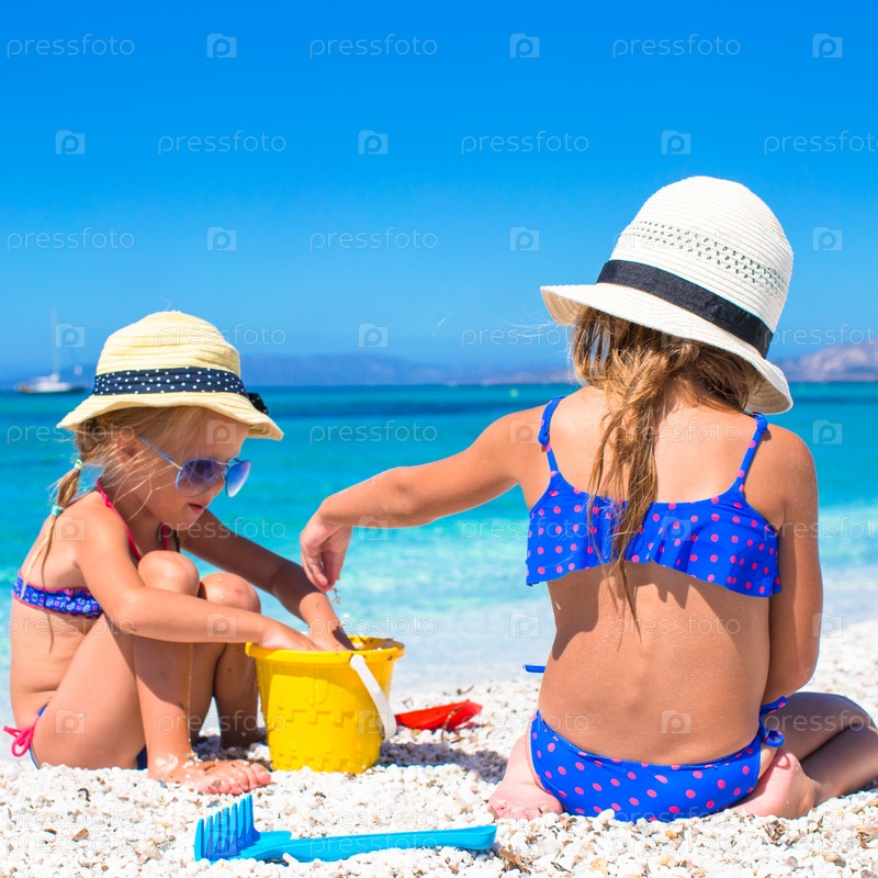 Маленькие девочки играют на пляже