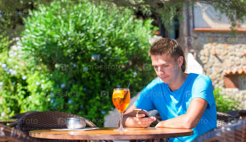 Молодой человек в открытом кафе