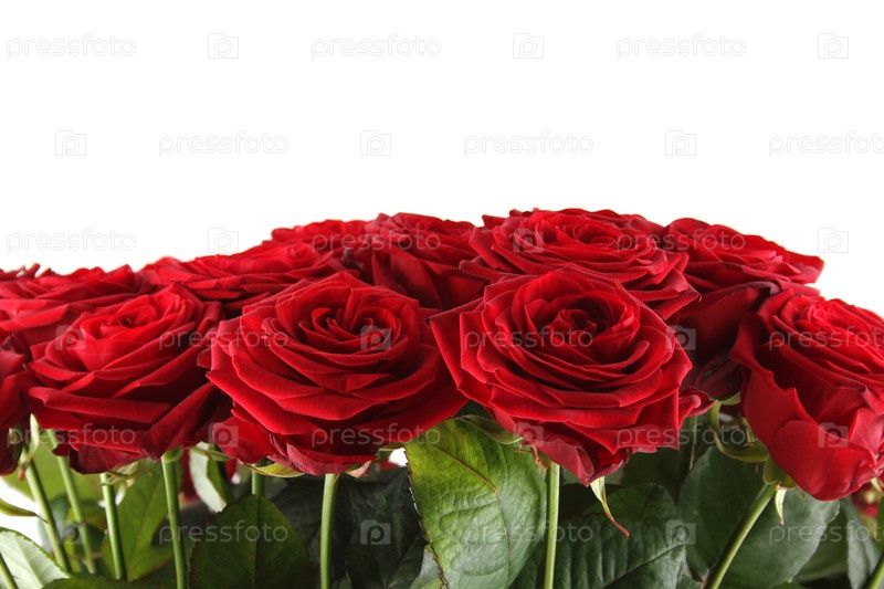 Красивый букет из красных роз на белом фоне