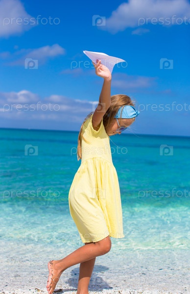 Маленькая девочка бегает по пляжу