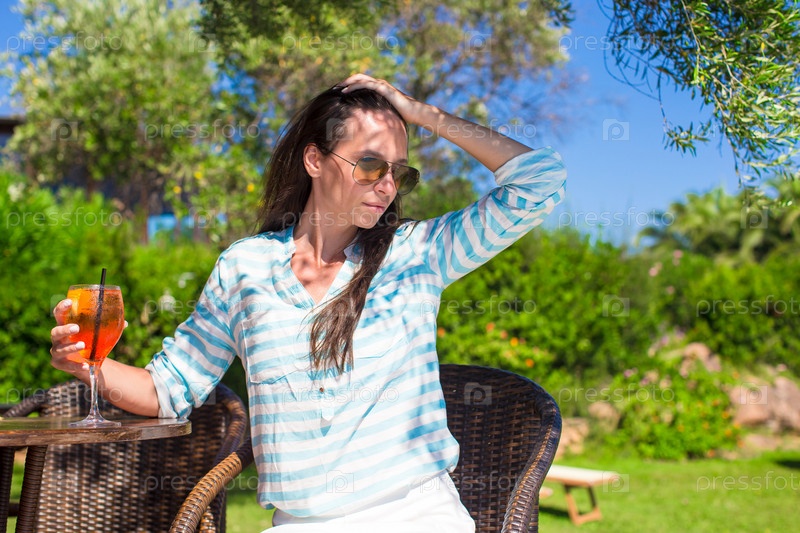 Молодая женщина с коктейлем в кафе