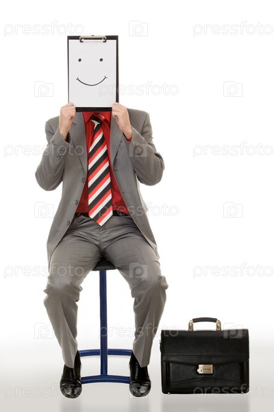 Портрет бизнесмена, держащего документ с улыбкой на лице