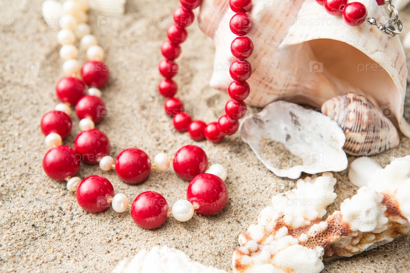 Ракушки и ожерелье на песке