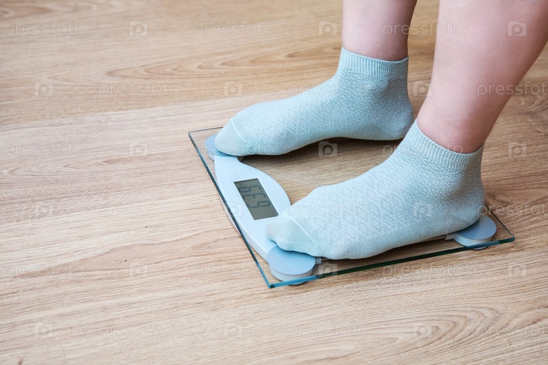 Женщина, стоя на весах