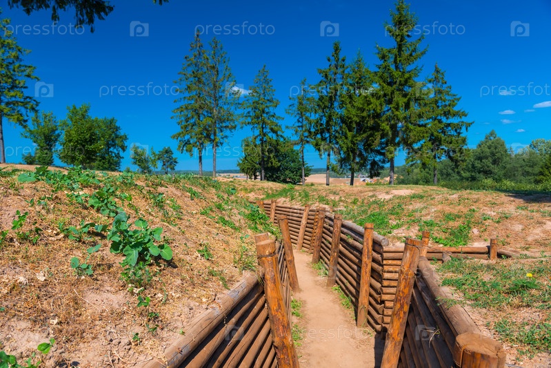 Укрепленные траншеи в поле для боевых операций