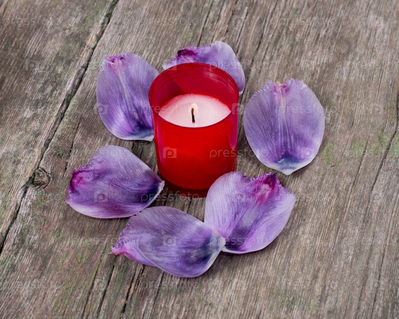 Красная свеча и лепестки