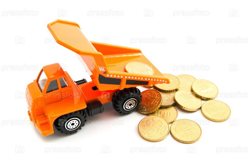Оранжевый грузовик и монеты евро