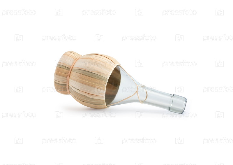 Пустая стеклянная бутылка на белом фоне