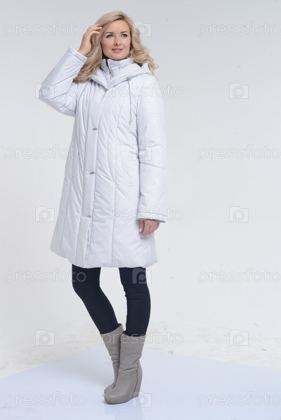 Молодая женщина в белом пальто