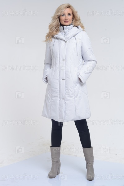 Молодая женщина в белом пальто