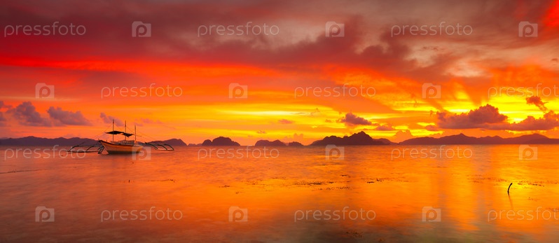Лодки на закате. Панорама